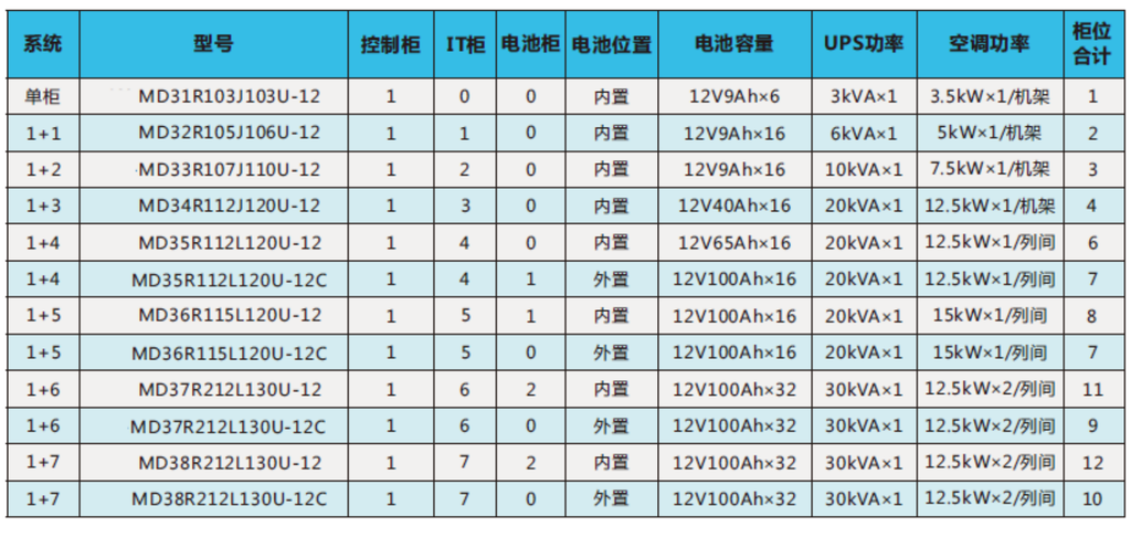 单排微模块标准配置